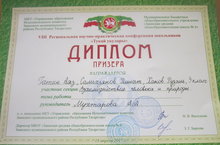 Г. Тукайның туган көне уңаеннан Зәй шәһәрендә VIII Региональ фәнни-гамәли конференция "Тукай укулары" булып узды. Анда 3 класс укучылары Гатин Аяз, Салихзянов Ришат, Ханов Рүзәл "Кечкенә генә батарейканың табигатькә зарары" дигән проект эшен яклап призер дипломы белән бүләкләнделәр. Җитәкчесе Мохтарова Ә.А.