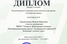 "Укытучылар альянсы" сайтында "Иң яхшы остаз" республикакүләм конкурсы узды. Әлеге бәйгедә мәктәбебезнең математика,алгебра фәннәре укытучысы Гардисламова Флүдә Мирза кызы 1 урынга лаек дип табылды.Чын күңелдән тәбрик итәбез!