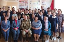 Боец ответил на все наши вопросы ,призвал нас любить свою Родину,быть смелыми и трудолюбивыми.Ученики школы обрадовали бойца концертными номерами.Встреча была очень содержательной и тёплой.