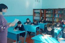 Бүген 5,6,7,8,9 класс укучылары инглиз теленнән диктант ("Just a dictation") яздылар.