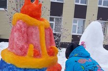 Новогодние превращения 18.12.2018 Перед школой-интернатом был построен сказочный снежный городок.
