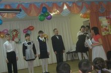 С международным праздником 8 марта поздравили всех женщин-сотрудников на торжественной линейке учащиеся и директор школы А.С.Хазиев.