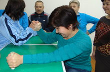 Армрестлинг 14.02.2015 Мероприятия спортивно-патриотического месячника продолжаются с широким размахом. Сегодня прошли соревнования по армрестлингу среди работников школы. Чемпионом школы стала Ильясова Каусария Зуфаровна.1 место заняла- Билалова Сафура Сафуановна,2 место у Набиевой Альфии Габдеравефовны,3 место –Галиева Ляйля Финарисовна. Молодцы! Так держать!