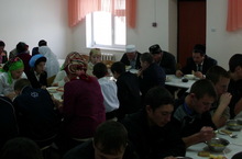 18 нче ноябрь көнне мәктәбебездә матур гадәткә кергән йола-корбан бәйрәмендә күчтәнәч итеп китерелгән корбан итләреннән авыз итү мәҗлесе оештырылды. Мәҗлескә раоныбызның имам-мөхтәсибе Руслан хәзрәт, авылыбызның имам-хатыйбе Яхъя хәзрәт, барлык укучылар, лаеклы ялдагы һәм коллективтагы барлык хезмәткәрләр чакырылды. Руслан хәзрәт корбан бәйрәменең тарихына тукталды, укучыларга табын әдәбе һәм гомумкешелек сыйфатлары турында вәгазь укыды.