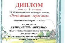 "Туган телем -серле тел" конкурсының җиңучеләре: Калимуллина Анжелика, Арсланов Алмаз ,Гыйльфанов Рушат 1 нче, Камалова Рузилә 2 нче дәрәҗәдәге дипломга ия булдылар. Укытучылары : Набиева А.Г. ;Мансурова Ю. И.; Гибадуллина З. М.