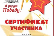Сертификатом участника за участие в региональном конкурсе "Я рисую Победу!" награждены Давлетов Альмир,ученик 2 класса,Арсланов Алмаз,ученик 5 класса