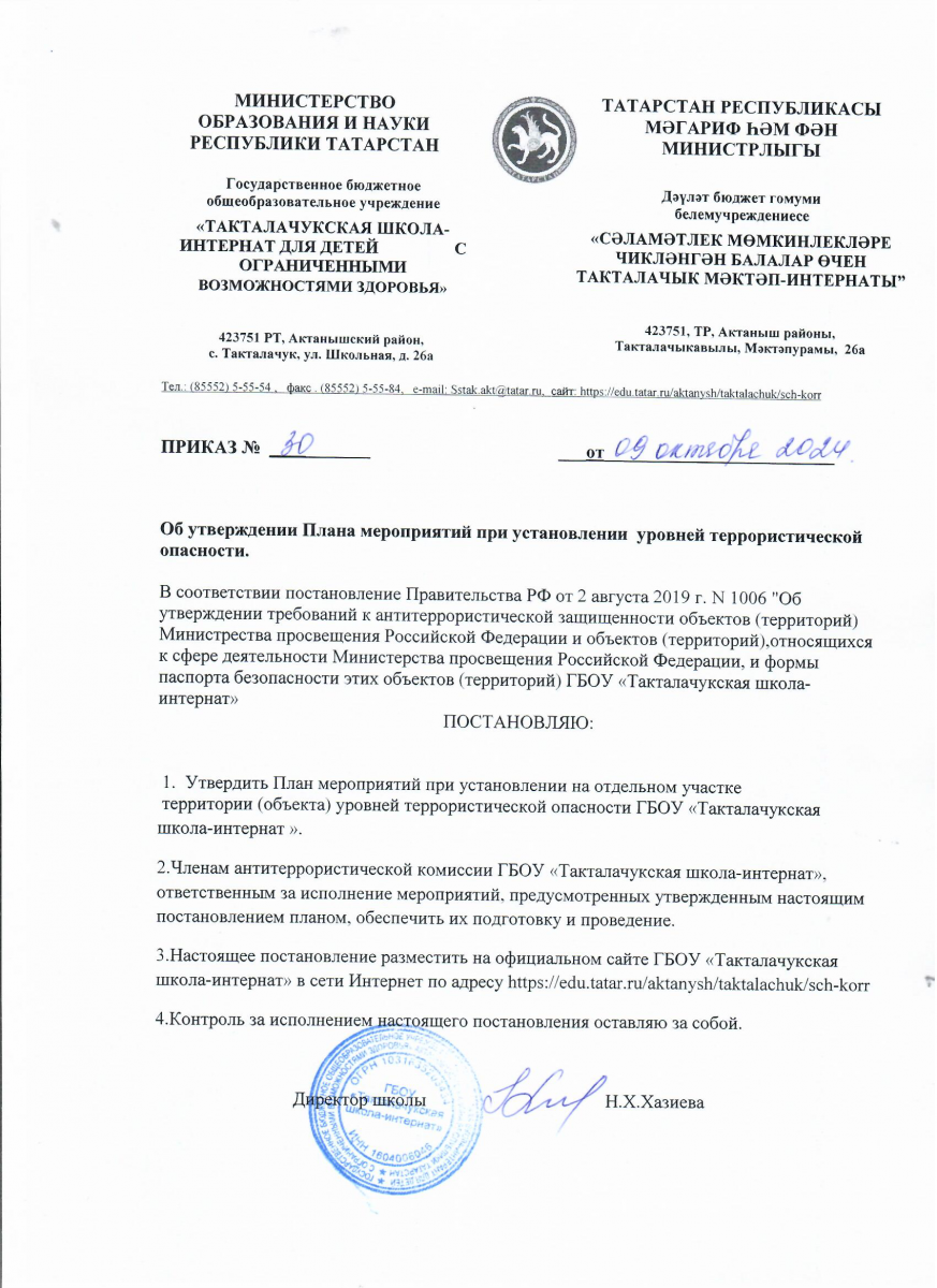 ПОРЯДОК эвакуации работников, обучающихся и иных лиц,находящихся в ГБОУ "Такталачукская школа-интернат",в случае получения информации об угрозе совершения или о совершении террористического акта.