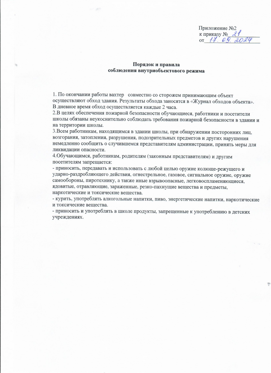 Приложение №2 к приказу 21 от 17_09_2024 г_ Порядок и правила внутриобъектового режима.