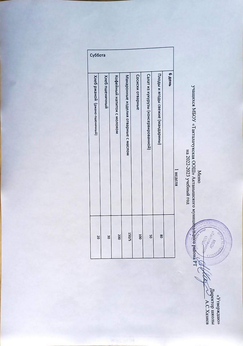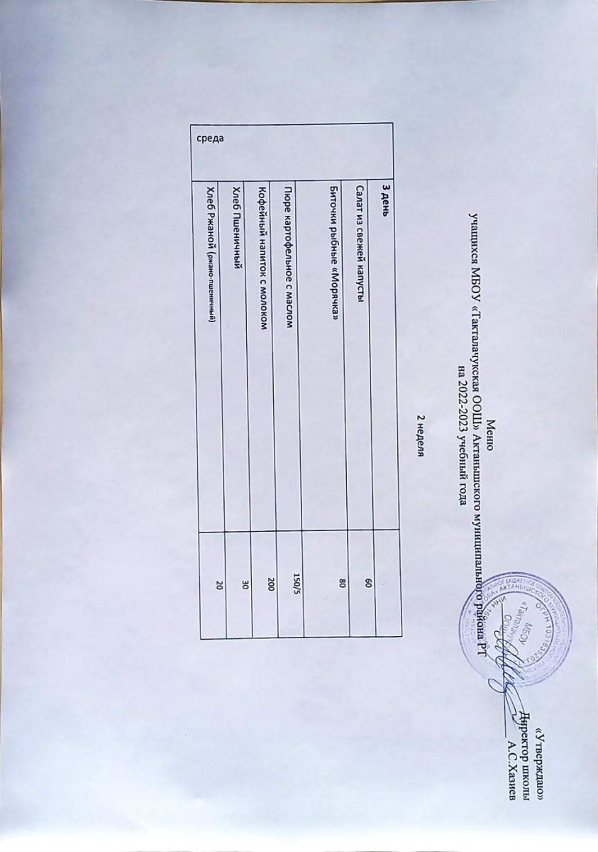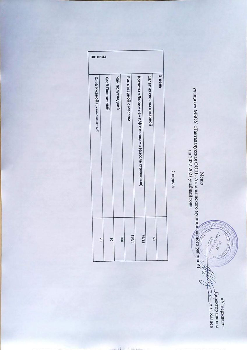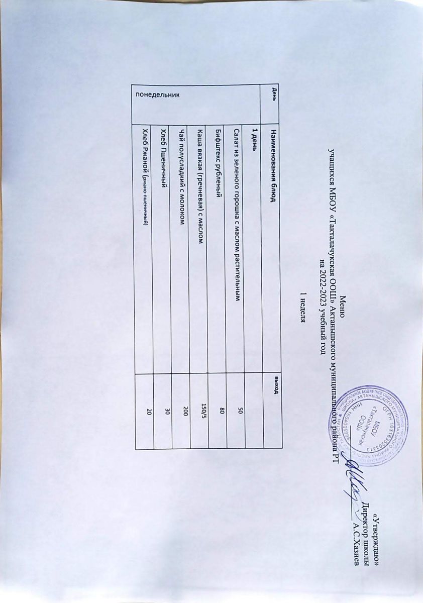 Однодневные меню 2022-2023 учебного года / Көндәлек меню