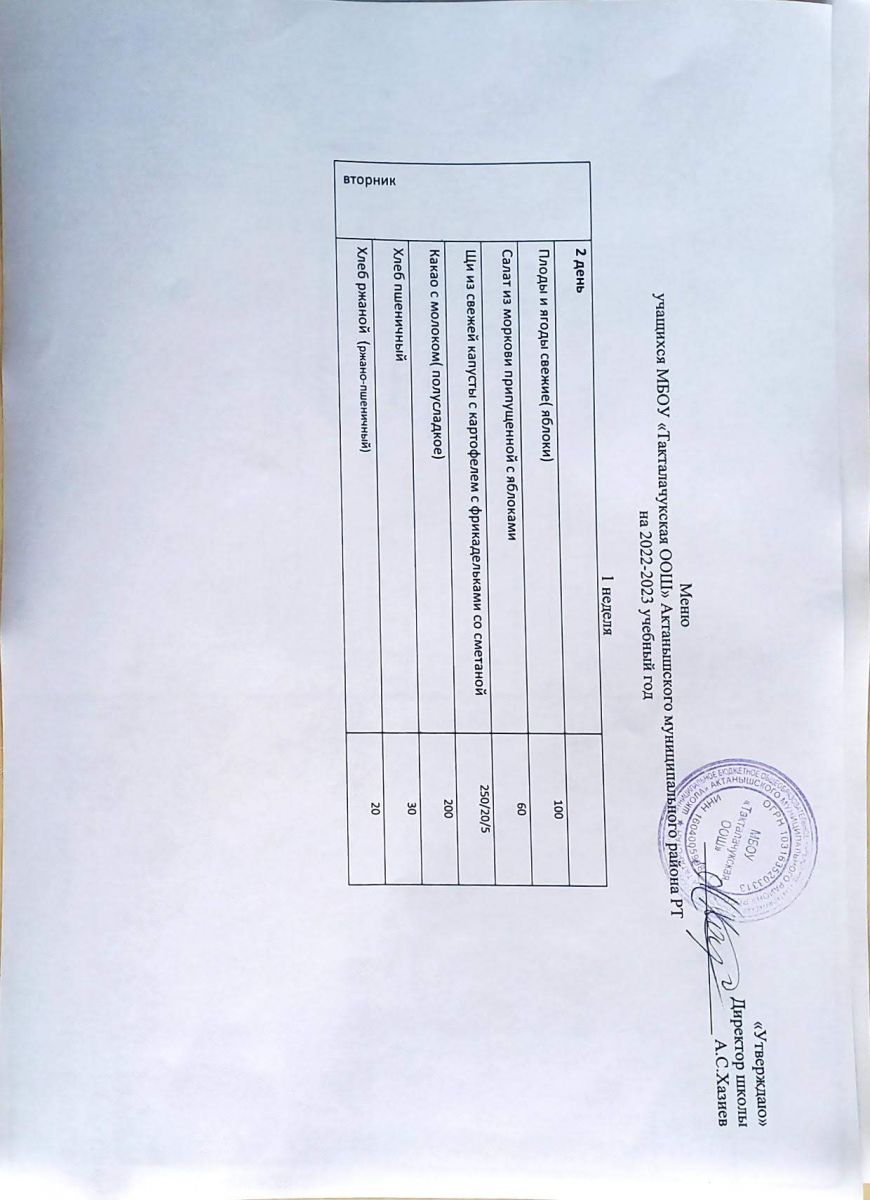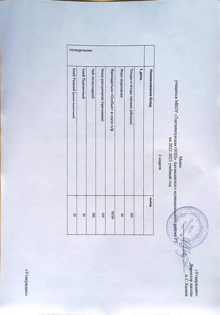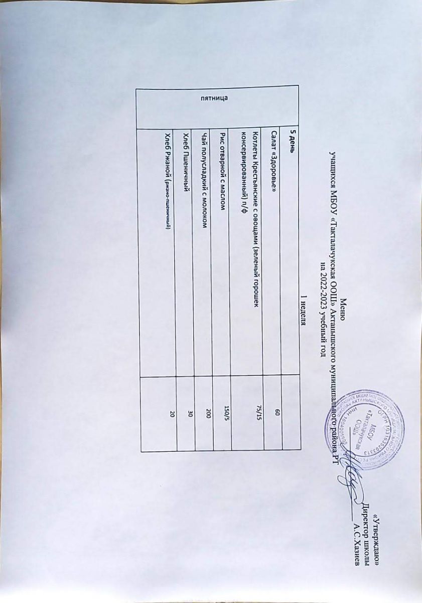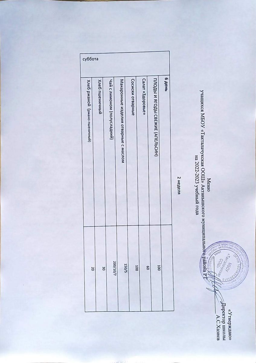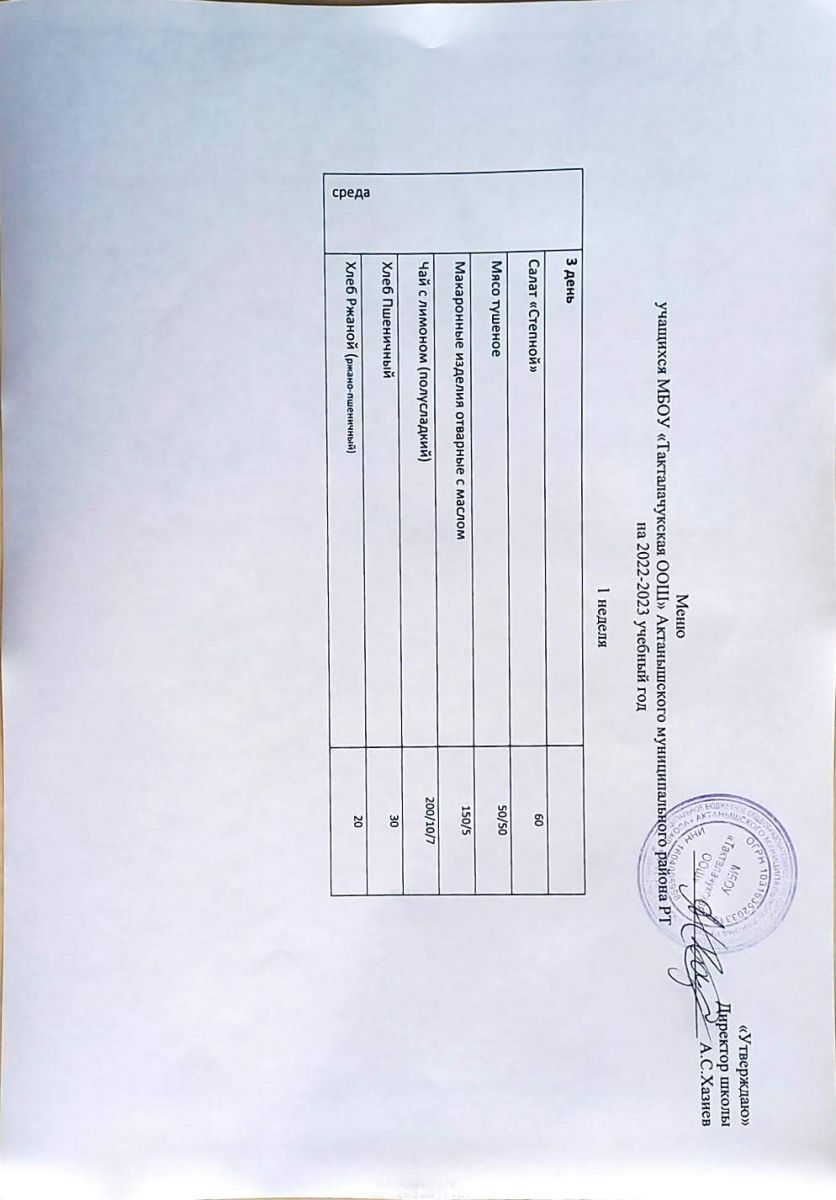 Однодневные меню 2022-2023 учебного года / Көндәлек меню