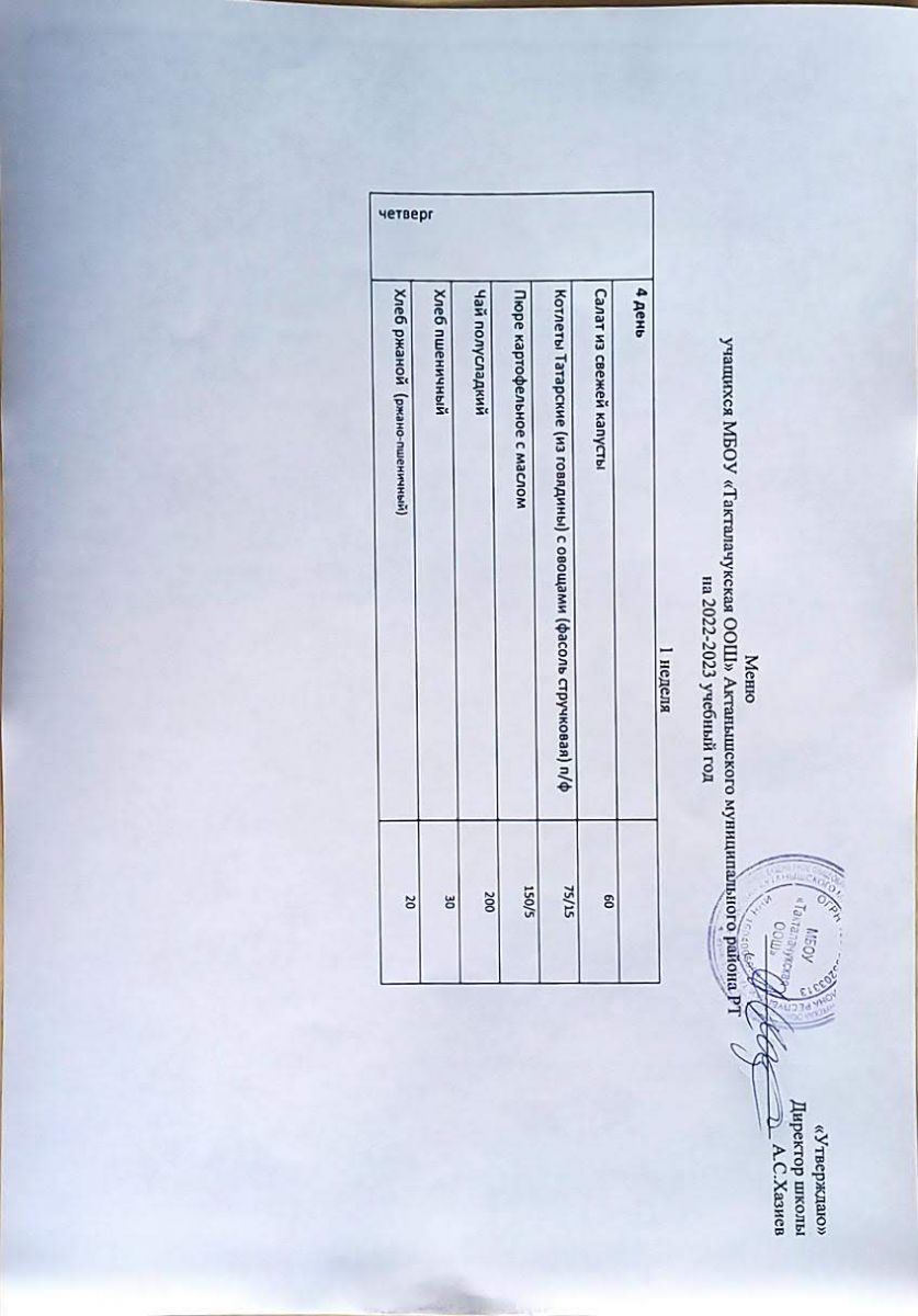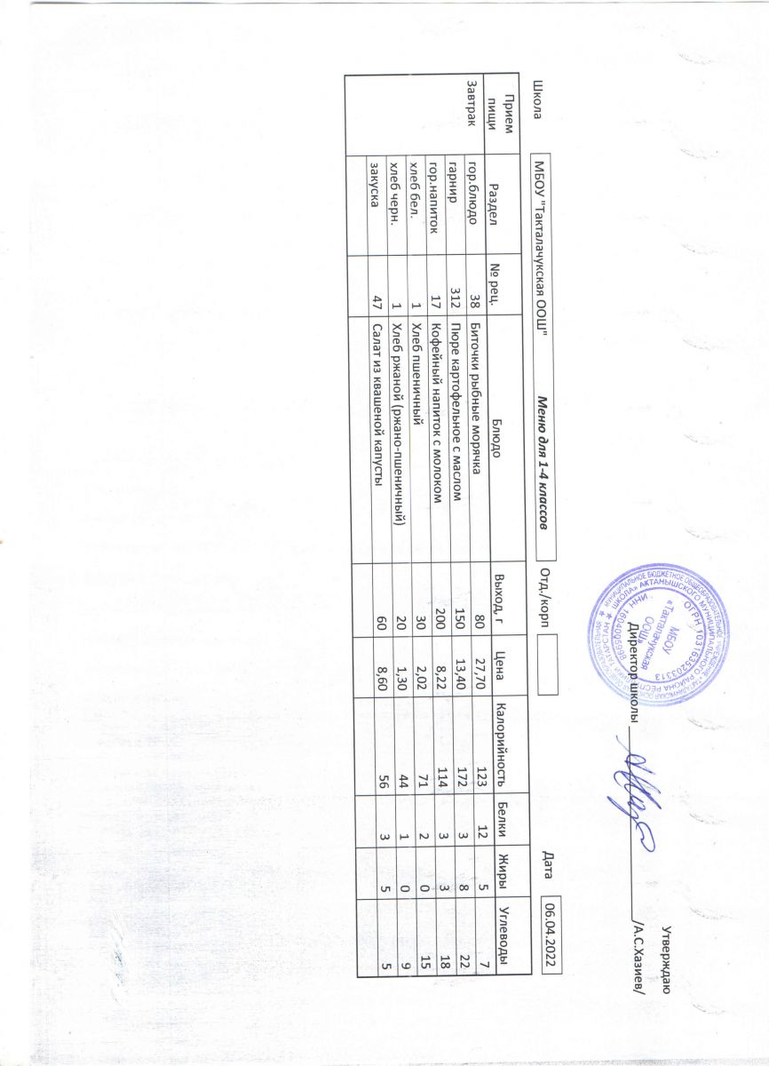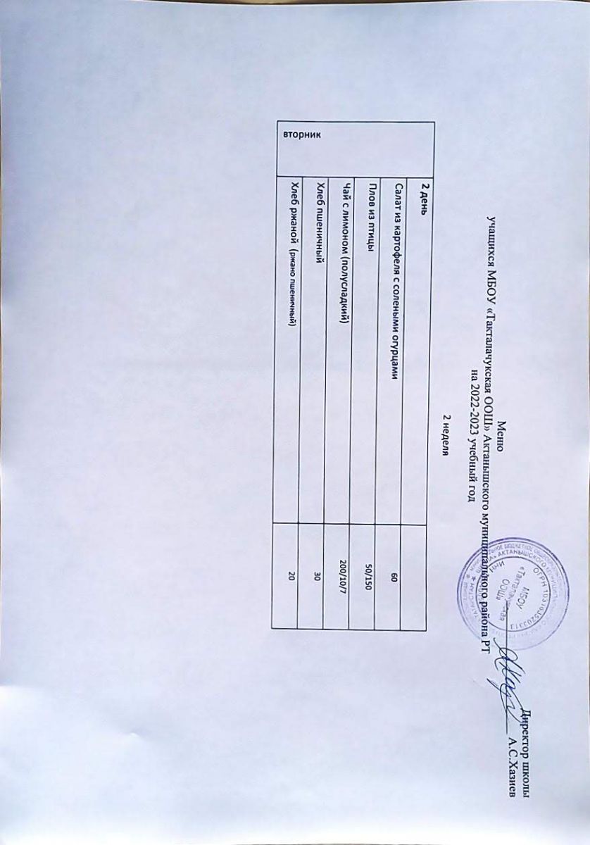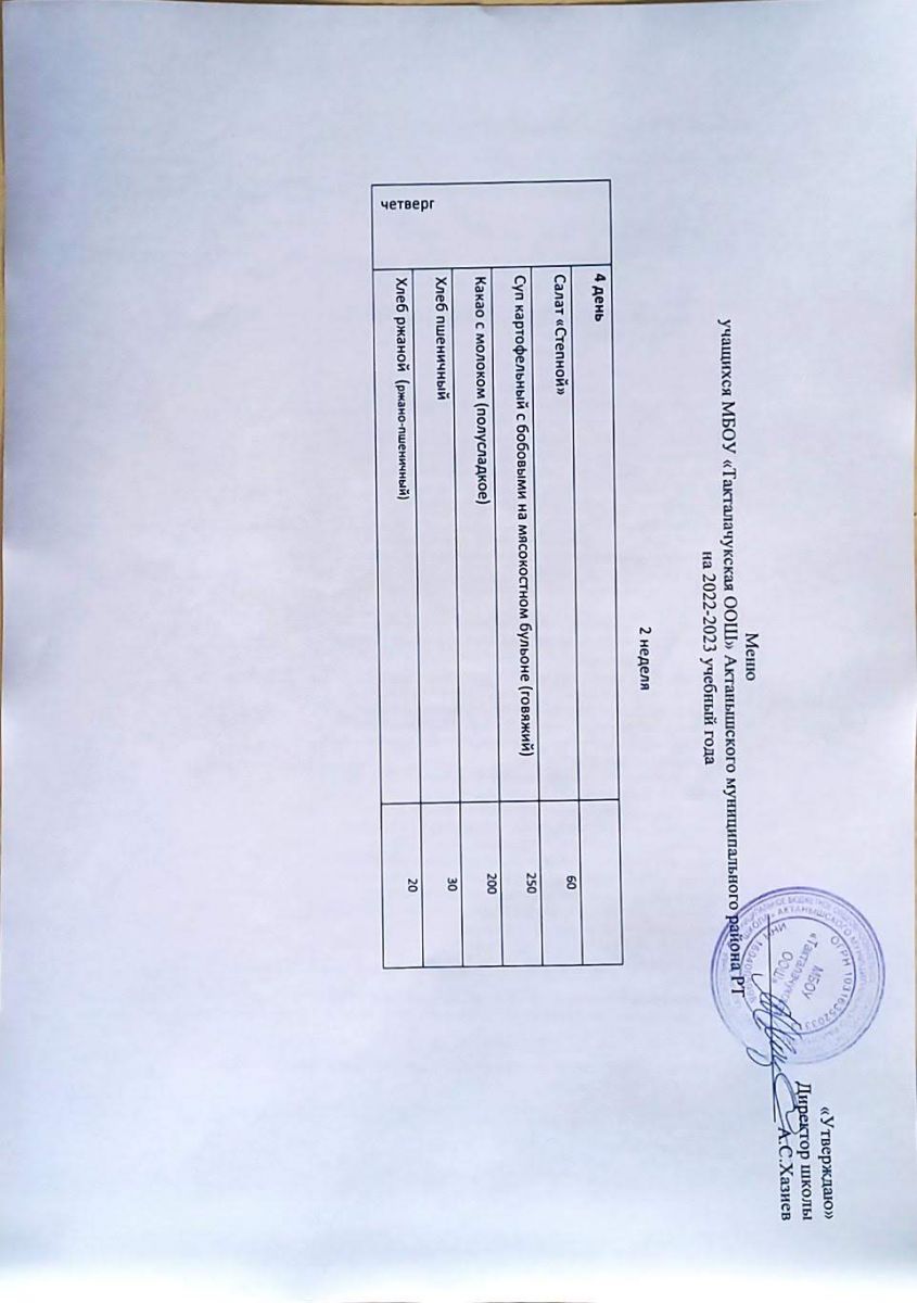 Однодневные меню 2022-2023 учебного года / Көндәлек меню