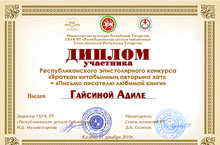 Республика күләмендә оештырылган "Яраткан китабымның авторына хат" эпистоляр жанрдагы конкурска йомгак ясалды. Әлеге бәйгенең муниципаль этабында 6 нчы класс укучысы Гайсина Әдиләнең эше җиңүче дип билгеләнеп, республика этабына җибәрелде һәм 21 декабрь көнне Казан шәһәренә бүләкләү тантанасына чакыру алды.