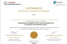 Учитель английского языка Гайсина Л.Ф. участвовала на вебинаре "Формирование цифровой компетенции преподавателя иностранного языка".