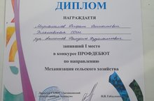 20нче март көнне Актаныш технология техникумының ресур үзәгендә үткән "Профдебют" конкурсында 9нчы класс укучысы Сәетгәрәев Инсаф - сварщик, Миңнегулов Айдар - электрик, 8нче класс укучысы Миргалимов Рифат - авыл хуҗвлыгы механизациясе юнәлеше буенча уңышлы чыгыш ясадылар. Миргалимов Рифат 1нче урынны яулады. Җитәкчеләре - Ахметов Рәмзил Хуҗагали улы. Молодцы!