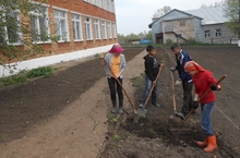 Мәктәп бакчасында язгы эшләр дәвам итә.
