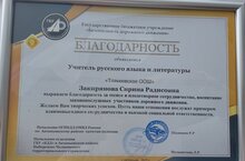 Благодарность ГБУ "БДД" 09.03.2023 Начальник ОГИБДД ОМВД России по Актанышскому району, капитан полиции Шамсиев Р.Р, начальник отделения ГБУ “БДД” в Актанышском районе Набережго- Челнинского территориального управления Мухаметова Л.Р выражают благодарность учителю русского языка и литературы “Тлякеевской ООШ” Сирине Радисовне за тесное и плодотворное сотрудничество, воспитание законопослушных участников дорожного движения. Россия Эчке эшләр министрлыгының Актаныш районы буенча ЮХИДИ идарәсе башлыгы, полиция капитаны Р.Р. Шәмсиев, Чаллы территориаль идарәсенең Актаныш районындагы "БДД" ДБУ бүлекчәсе башлыгы Л. Р. Мөхәммәтова Теләкәй гомуми белем бирү мәктәбенең рус теле һәм әдәбияты укытучысы Сирина Радис кызына тыгыз һәм нәтиҗәле хезмәттәшлек, юл хәрәкәтендә законга буйсынучы катнашучыларны тәрбияләгәне өчен рәхмәт белдерәләр.