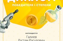 9 ноября на международном "Videouroki.net" проекте в олимпиаде по биологии ученик 8 класса Галиев Рустам Расулович стал победителем и получил Диплом 1 степени. Учитель - Хабиров Газинур Анзяпович.Молодцы!/ 9 нчы ноябрьдә халыкара " Vide-ouroki.net" проектының биология олимпиадасында 8нче класс укучысы Галиев Рөстәм Рәсүл улы җиңүче булды һәм 1нче дәрәҗә диплом белән бүләкләнде. Укытучысы Хабиров Газинур Анзяпович. Әфарин!
