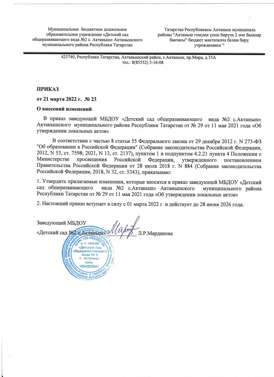 | Короткое название: | МБДОУ «Детский сад №2 с. Актаныш» |
