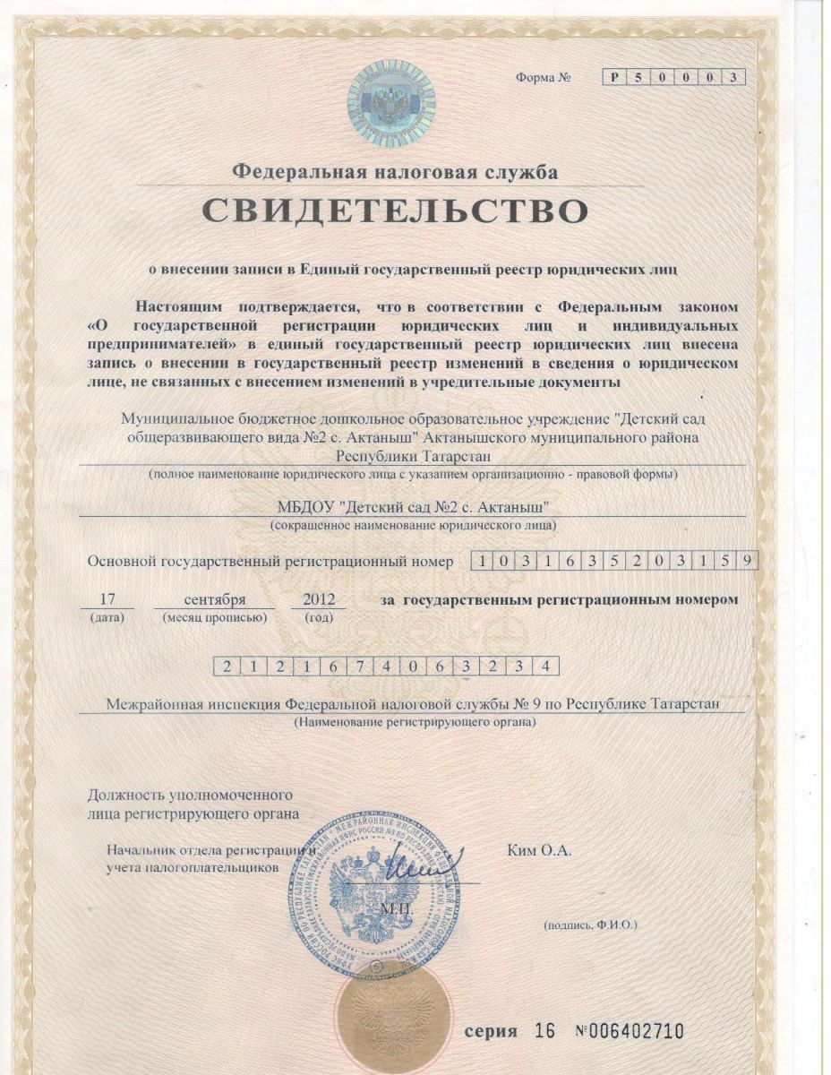 Свидетельство ОГРН