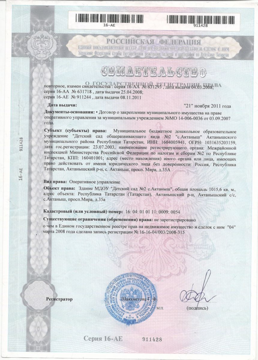 Короткое название: МБДОУ «Детский сад №2 с. Актаныш»