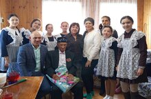 Сегодня исполнилось 100 лет ветерану Великой Отечественной войны Валиеву Тафкилу Валиулловичу. Волонтерский отряд, работающий в школе, поздравил ее с Днем рождения, вручил подарок.