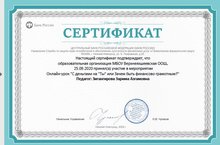 Учащиеся получили сертификат на участие в онлайн-уроке "Финансовая грамотность".Педагог: Зигангирова З.А.