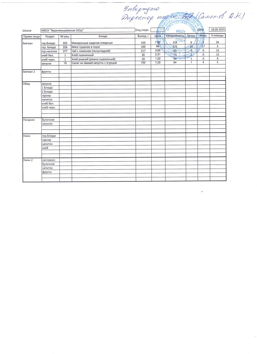 Однодневное меню на 18.09.2023 Однодневное меню на 19.09.2023 Однодневное меню на 20.09.2023