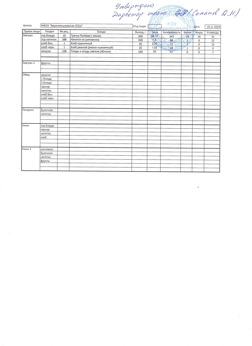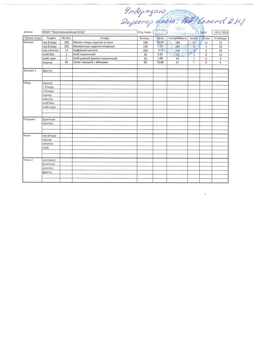 Однодневное меню на 19.10.2023 Однодневное меню на 20.10.2023 Однодневное меню на 21.10.2023