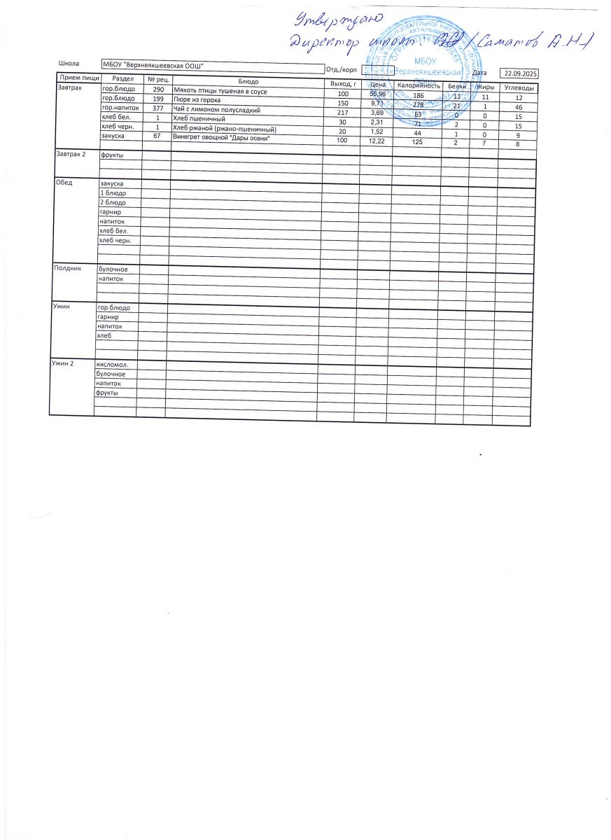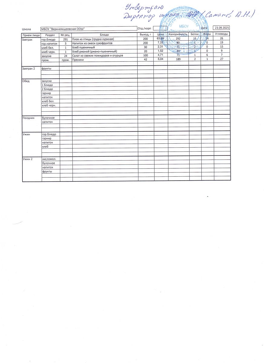 Однодневное меню на 21.09.2023 Однодневное меню на 22.09.2023 Однодневное меню на 23.09.2023