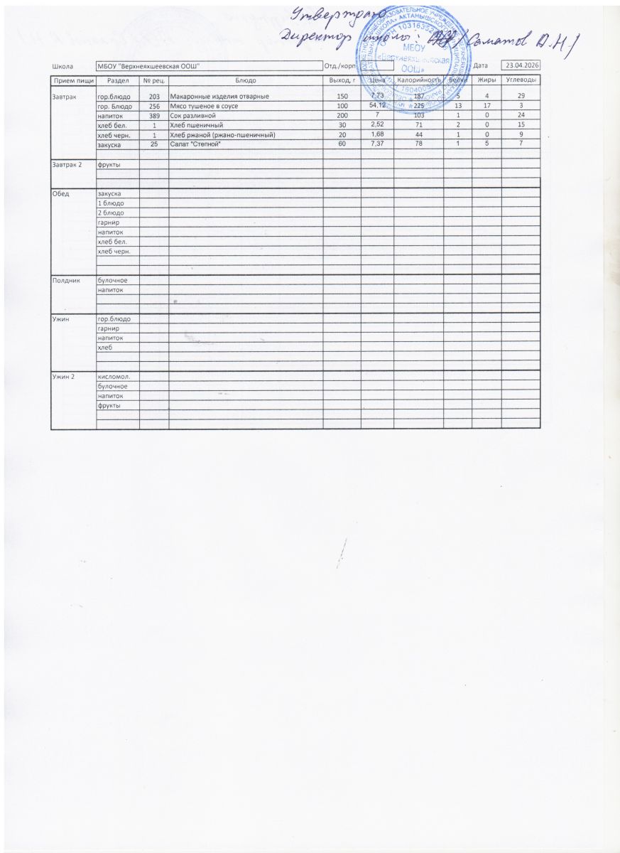 Однодневное меню на 23.10.2023 Однодневное меню на 24.10.2023 Однодневное меню на 25.10.2023