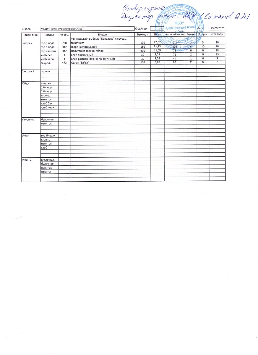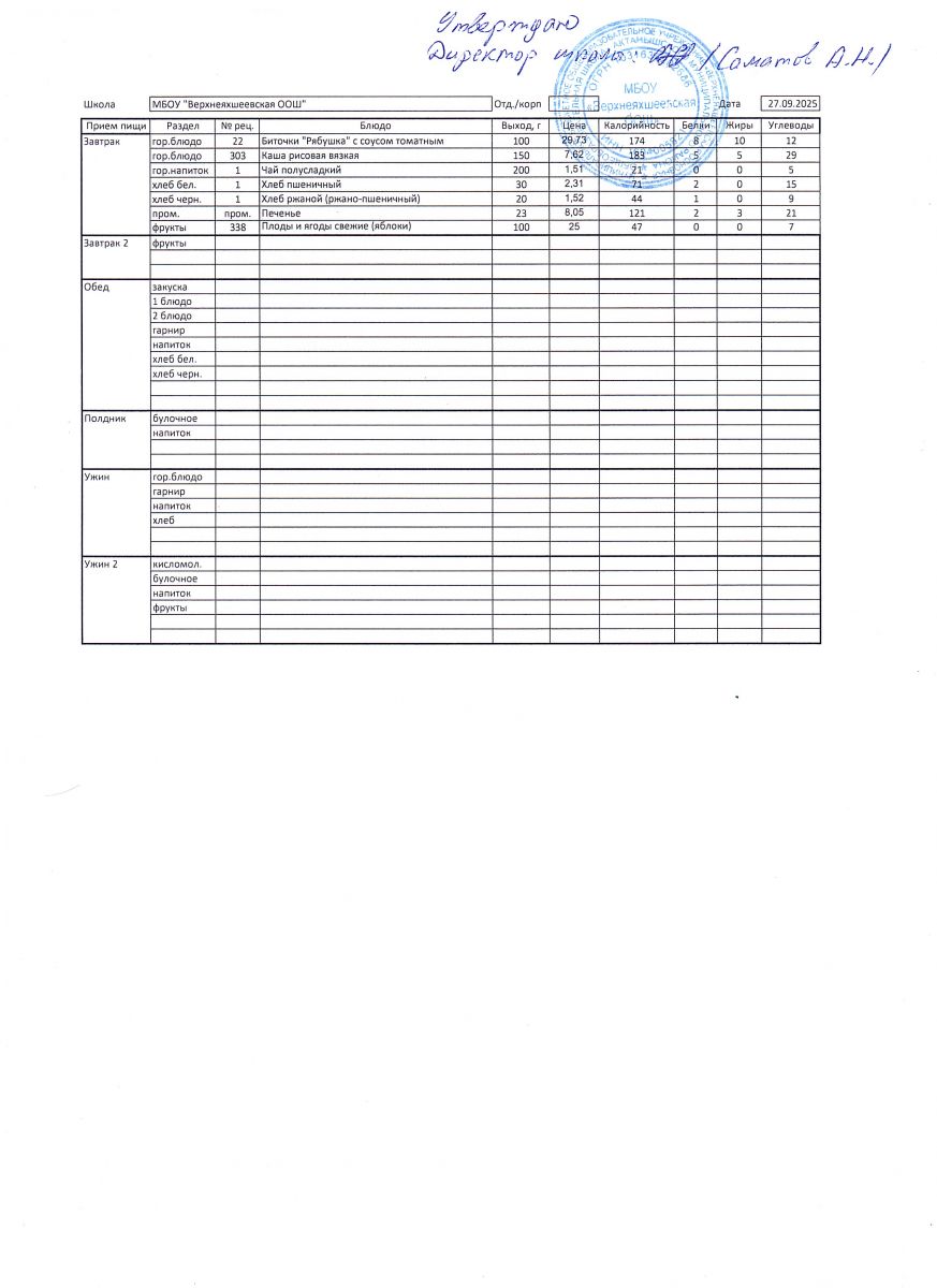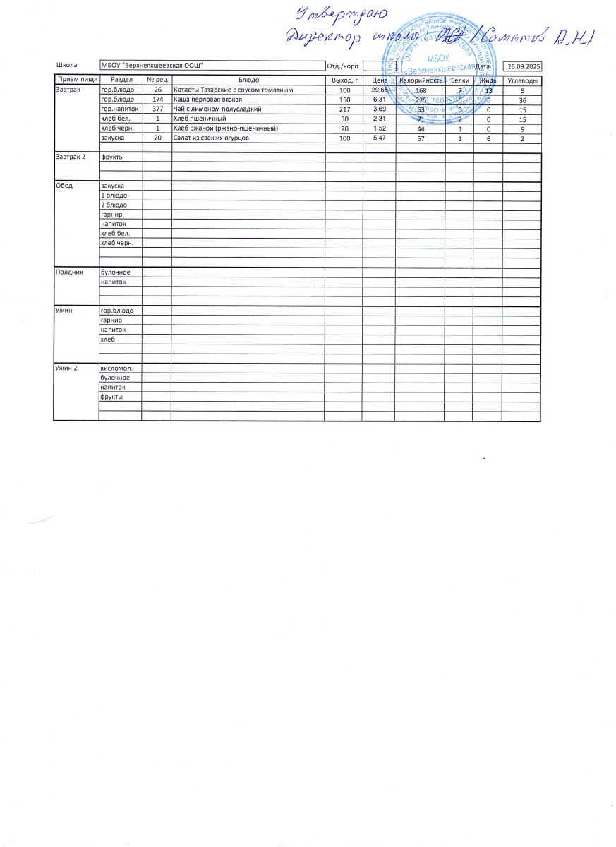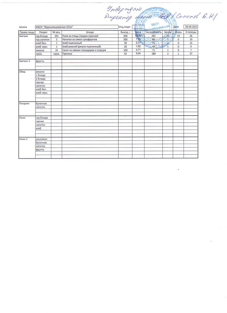 Однодневное меню на 25.09.2023 Однодневное меню на 26.09.2023 Однодневное меню на 27.09.2023
