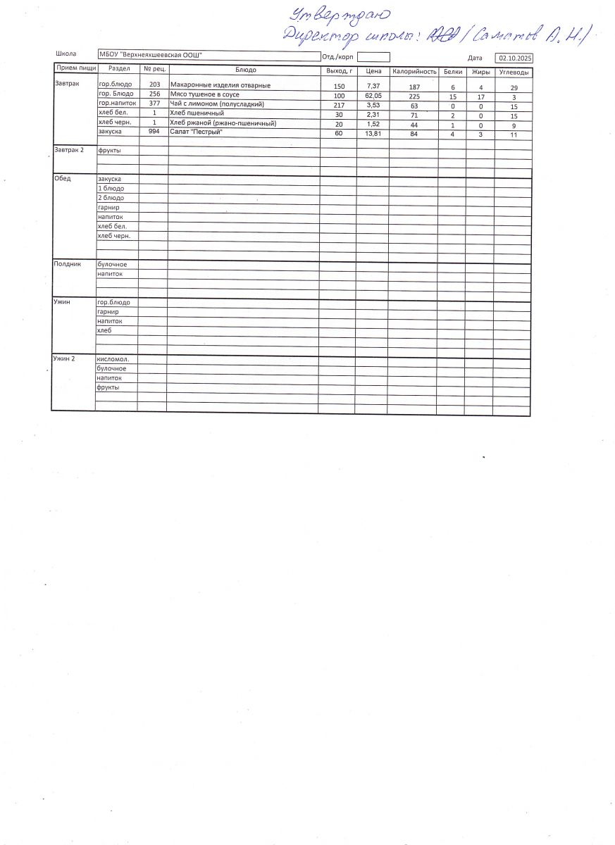 Однодневное меню на 02.10.2023 Однодневное меню на 03.10.2023 Однодневное меню на 04.10.2023
