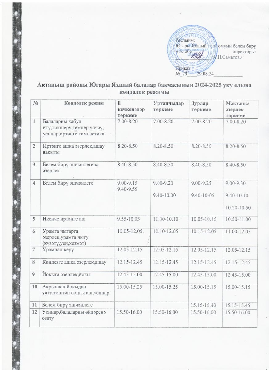Режим дня на 2024-2025 учебный год/2024-2025 уку елына көндәлек режимы