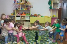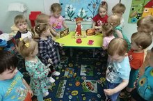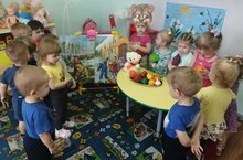 С детьми 2 гр раннего возраста воспитатель Хусаинова В. провела занятие на тему: "Как можно порадовать медвежонка". Где продолжали учить детей играть и разговаривать с игрушкой, употребляя разные по форме и содержанию обращения. А также поиграли в подвижную игру, развивая речь как средство общения.