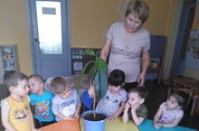 Живая природа вызывает у ребят и любопытство, и симпатию, и желание помочь, заботиться, ухаживать. Но все эти добрые чувства только тогда станут фактором нравственного, духовного, эстетического и физического воспитания, когда взрослые сумеют правильно организовать труд дошкольника по уходу за растениями и грамотно им руководить. На занятии по познавательно у развитию ребята младшей группы познакомились с ФИКУСОМ, узнали об особенностях ухода за ним и о пользе этого растения для людей