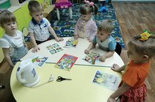 Дети младшей группы на занятии по рисованию закрепляли умение рисовать предметы круглой формы, повторять изображение, заполняя свободное пространство листа. Детям очень понравились упражнения с обручами.