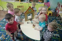 С детьми 2 группы раннего возраста провели занятие по развитию речи на тему: "Рассматривание сюжетной картины. Дети играют в песочнице". В процессе рассматривания активизировали речь, учились договариваривать слова строить небольшие фразы, а так же учились понимать содержание картины.