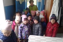 Дети старшей группы с воспитателем Зайцевой М.в гостях у кастелянши нашего детского сада.