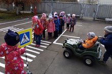 Во время прогулки в средней группе под руководством воспитателя Мезенцевой Н.А. прошло развлечение, направленное на профилактику дорожно-транспортного травматизма. Основная цель - формирование представлений детей о правилах дорожного движения и дорожных знаках.