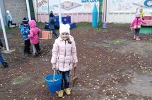 Последние осенние листочки. Дети подготовительной группы наводят порядок на своём участке- собирают последние осенние листочки.