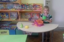 Дети старшей группы с воспитателем Кривовой С.А.учились правильно называть и узнавать фрукты и овощи на занятии по познанию " Во саду и в огороде".