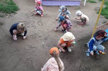 Дети старшей группы рисовали палочкой на песке поляну с ромашками.