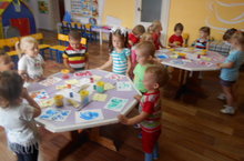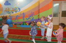 Дети младшей группы с Феоктистовой О, закрепляли понятия:длинная(короткая) дорожка,один,много,ниодного,большой(маленький)мяч.