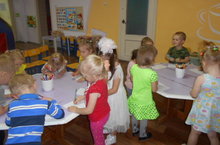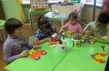 Дети младшей группы с воспитателем Феоктистовой О,учились лепить "крендельки"из пластилина.