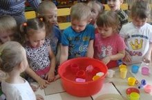 Дети средней группы на занятии по познавательному развитию исследуют свойства предметов из пластмассы.