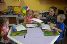 На занятии по рисованию дети младшей группы учились рисовать мыльными пузырями.