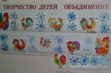 новогодних петушков - символ года. И оформили выставку для родителей.