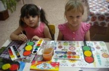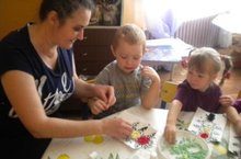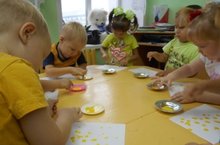 Занятие было необычное: малыши учились рисовать пальчиками зернышки для уточки.
