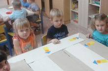Дети средней группы на занятии по ФЭМП закрепляют знания геометрических фигур.