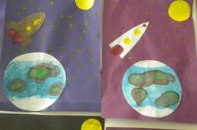 Дети старшей группы выполнили аппликацию ко Дню космонавтики.